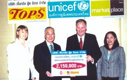 มร.เอียน ไพย์ กรรมการผู้จัดการใหญ่ บริษัท เซ็นทรัล ฟู้ด รีเทล จำกัด (ที่ 2 จากขวา) และคุณภัทรพร เพ็ญประพัฒน์ ผู้ช่วยรองประธานบริหารสายการตลาดและประชาสัมพันธ์ (ขวาสุด) เป็นตัวแทนมอบเงินบริจาคจำนวน 2,159,900 บาท ให้แก่องค์การยูนิเซฟ โดยมี ฯพณฯ อานันท์ ปันยารชุน ฑูตองค์การยูนิเซฟ ประเทศไทย (ที่ 2 จากซ้าย) และอินเนซ ซาลิทิส ผู้แทนองค์การยูนิเซฟประจำประเทศไทย (ซ้ายสุด) เป็นตัวแทนรับมอบเงิน ซึ่งเงินบริจาคในครั้งนี้ทางยูนิเซฟจะนำไปช่วยเหลือเด็กไทยผู้ด้อยโอกาสทางการศึกษา และขาดแคลนทุนทรัพย์ต่อไป