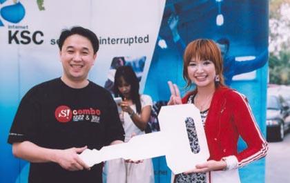 เค เอส ซี แจกจริง แจกแล้ว รางวัลที่หนึ่ง รถยนต์โตโยต้า อัลติส จากแคมเปญใหญ่ “ลุ้น 500 รางวัลกับ เค เอส ซี” พร้อมรางวัลใหญ่อื่นๆ เป็นประจำทุกเดือน อาทิ รถมอเตอร์ไซค์ ยามาฮ่า คอมพิวเตอร์โน้ตบุ๊คคอมแพค เพรสซาริโอ คอมพิวเตอร์เดสก์ท็อป เอชพี พาวิลเลียน ฯลฯ โดยนายประพนธ์ พงษ์ประพัฒน์ ผู้ช่วย ผู้อำนวยการ ฝ่าย Consumer Dial-Up Development บริษัท เค เอส ซี คอมเมอร์เชียล อินเตอร์เนต จำกัด (ซ้าย) มอบของรางวัลให้แก่เหล่าลูกค้าอินเทอร์เน็ตแพ็คเกจของเค เอส ซี ที่โชคดีหลักร่วมสนุกกับแคมเปญ “ลุ้น 500 รางวัลกับ เค เอส ซี” รวมทั้งมอบรางวัลใหญ่แก่นางสาววรจันทร์ แสงเงิน (ขวา) ซึ่งเป็นผู้โชคดีคว้ารางวัลที่หนึ่ง รถยนต์โตโยต้า อัลติส ป้ายแดงไปครอง