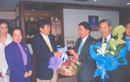 คุณสมภพ ศักดิ์พันธ์พนม กรรมการผู้จัดการ บริษัท แอสเซท โปร แมเนจเม้นท์ จำกัด (APM) ในฐานะประธานชมรม CFO รุ่น 1 พร้อมด้วยคุณปรารถนา มโนมัยพิบูลย์ ดร.นารี บุญธีรวร คุณไพโรจน์ เอื้อบุญกุล คุณอารีศักดิ์ เสถียรภาพอยุทธ์ ได้มอบกระเช้าสวัสดีปีใหม่ คุณพิชัย ชุณหวชิร รองกรรมการผู้จัดการใหญ่ การเงิน และบัญชีองค์กร เมื่อวันที่ 18 มกราคม 2548 ณ บริษัท ปตท. จำกัด (มหาชน)