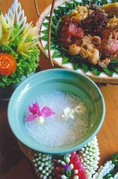 สืบสานร่วมสมัย “ข้าวแช่ชาววัง” กับห้องอาหารไทยฮอท แอนด์ สไปซี่ โรงแรมอิมพาล่า สุขุมวิท 24 ด้วยข้าวแช่ที่สืบทอดตำรับมาจากวังเทวะเวสม์ ครบเครื่องด้วยพริกหยวกสอดไส้กุ้ง ลูกกะปิ หอมสอดไส้ เนื้อฝอย ปลาเค็มชุบไข่ และไชโป๊วผัดไข่ พร้อมเครื่องเคียงกระชาย มะม่วงและต้นหอมที่สลักเสลา ตกแต่งอย่างสวยงาม เลิศรสไปกับข้าวแช่ตำรับชาววังได้ตั้งแต่ 16 มีนาคม – 30 เมษายน 2548 นี้ เพียงชุดละ 150 บาทสุทธิ