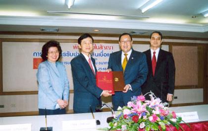 นายอรุณ จิรชวาลา กรรมการผู้จัดการใหญ่ ธนาคารนครหลวงไทย จำกัด (มหาชน) นายขรรค์ ประจวบเหมาะ กรรมการผู้จัดการ ธนาคารอาคารสงเคราะห์ (ธอส.) ร่วมลงนามในสัญญา “การให้บริการรับชำระค่าสินเชื่อแก่ลูกค้า ธอส.” ซึ่งเป็นการรับชำระเงินกู้ให้แก่ลูกค้าสินเชื่อบ้านของธนาคารอาคารสงเคราะห์ผ่านระบบ Counter Payment ธนาคารนครหลวงไทยทุกสาขาทั่วประเทศ ณ ห้องประชุมชั้น 10 ธนาคารนครหลวงไทย สำนักงานใหญ่ เมื่อเร็วๆ นี้