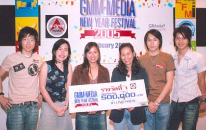 บอสใหญ่ สายทิพย์ มนตรีกุล ณ อยุธยา พร้อมเหล่าดีเจ พิธีกรชื่อดัง เป้-วิศวะ กิจตันขจร อ้อย-นภาพร ไตรวิทย์วารีกุล เจ-ฐานัตถ์ พัฒนเฑียรฆ และ ไอซ์-ศรัณยู วินัยพานิช ร่วมกันแสดงความยินดีเป็นครั้งที่ 2 กับการแจกรางวัลในโครงการ GMM Media New Year Festival 2005 ซึ่งนางสาวกนกวรรณ เกดนิ่ม เป็นผู้โชคดีประจำเดือนมกราคม รับรางวัลเงินสด 50,000 บาท ติดตามรายละเอียดการร่วมสนุกครั้งต่อไปได้ที่ www.atimemedia.com หรือ www.grammytelevision.com หรือ www.eotoday.com หรือ Call Center 02-669-9653