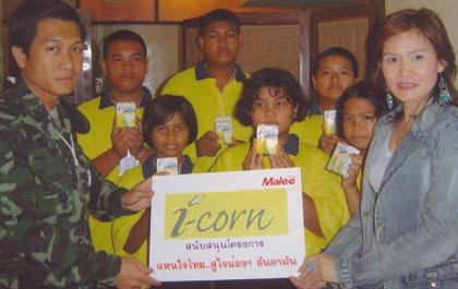 นางสาวษมากร โอภาส (ขวาสุด) ผู้จัดการส่วนประชาสัมพันธ์ กลุ่มบริษัท มาลี สามพราน จำกัด (มหาชน) เป็นตัวแทนบริษัทฯ เข้ามอบผลิตภัณฑ์น้ำนมข้าวโพดไอ-คอร์น จำนวน 600 กล่อง แด่เยาวชนผู้ประสบภัยคลื่นยักษ์ภาคใต้ ในโครงการ “กองทัพบก-นกแอร์-การบินไทย-แทนใจไทยใส่ใจน้องๆ อันดามัน” ที่จัดโดยกองทัพบก เพื่อรับประทานเสริมสุขภาพในระหว่างการทัศนศึกษาสถานที่ท่องเที่ยวสำคัญในกรุงเทพฯ โดยมีพันเอกธนาธิป สว่างแสง (ซ้ายสุด) รองโฆษกกองทัพบก เป็นตัวแทนรับมอบ