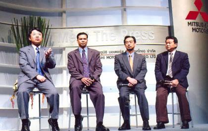 มร.ฮิซาโยชิ คุมาอิ (ซ้ายสุด) กรรมการผู้จัดการใหญ่และประธานเจ้าหน้าที่บริหาร ร่วมกับกลุ่มผู้บริหารระดับสูง บริษัท มิตซูบิชิ มอเตอร์ส (ประเทศไทย) จำกัด แถลงนโบายและแผนการดำเนินงานปี 2548 ตั้งเป้ายอดขายในประเทศ 45,000 คัน โดยมีแผนเปิดตัวรถปิกอัพโฉมใหม่ปลายไตรมาส 3 ด้านตลาดส่งออกตั้งเป้าไว้กว่า 100,000 คัน พร้อมกับเตรียมฉลองความสำเร็จยอดส่งออกตลาดต่างประเทศตลอด 17 ปีครบ 700,000 คันในไตรมาสแรกของปีนี้