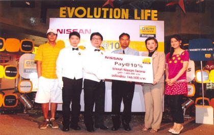 จีเอสเอ็ม แอดวานซ์ โดยนายกฤษณัน งามผาติพงศ์ รองกรรมการผู้อำนวยการ สายงานการตลาด เอไอเอส (ที่ 3 จากซ้าย) มอบรางวัลรถยนต์นิสสัน เทียน่า สุดหรูในราคาสุดพิเศษ จ่ายเพียง 10% จากราคา 1.4 ล้านบาท เหลือเพียง 1.4 แสนบาทเท่านั้น ให้กับลูกค้าจีเอสเอ็ม แอดวานซ์ ผู้โชคดีที่ร่วมสนุกกับแคมเปญ PAY@10% ลดจริง ให้จริง ลุ้นรับสิทธิเลือกซื้อของอินเทรนด์เพียง 10% จากราคาเต็ม โดยมีสินค้าฮ็อตๆ มาให้เลือกมากมาย ผ่านทาง GSM advance Digest พร้อมแนะนำแคมเปญล่าสุดของปี 2005 ภายใต้ชื่อ EVOLUTION Life สิทธิพิเศษในทุกๆ ด้านของการใช้ชีวิตล้ำๆ อาทิ Exclusive Trip ทั้งในและต่างประเทศ ประเดิมด้วยทริป “บอกรักอันดามัน” ต้นเดือนเมษายนนี้ และอื่นๆ อีกมากมายที่ทยอยออกมาสร้างสีสันให้กับลูกค้าจีเอสเอ็ม แอดวานซ์เท่านั้น