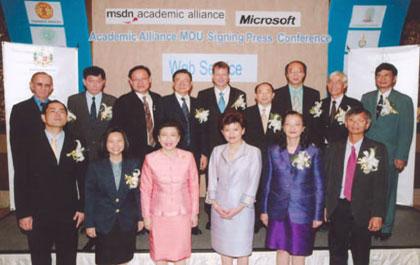 บริษัท ไมโครซอฟท์ (ประเทศไทย) จำกัด ลงนามในสัญญาความร่วมมือระยะเวลาสามปีกับมหาวิทยาลัยชั้นนำสิบสองแห่ง เพื่อช่วยเสริมสร้างทักษะด้านไอทีกับนักศึกษาที่เรียนทางด้านการพัฒนาซอฟท์แวร์ให้สามารถเข้าถึงเทคโนโลยี เครื่องมือในการพัฒนา และได้รับการอบรมตามโครงการ Academic Alliance ซึ่งความร่วมมือในครั้งนี้ บริษัท ไมโครซอฟท์ (ประเทศไทย) จะมอบไลเซนส์สำหรับการใช้ชุดเครื่องมือพัฒนาซอฟท์แวร์ครบชุดบนพื้นฐานเทคโนโลยี .Net รวมถึงเนื้อหาหลักสูตร และสิทธิ์ในการเข้าถึงการวิจัยระดับโลกบนเว็บท่า ตลอดจนทรัพยากรสำหรับการสอนและการวิจัย รวมมูลค่าประมาณ 30 ล้านบาทต่อมหาวิทยาลัย ทั้งนี้ โครงการ Academic Alliance มีวัตถุประสงค์เพื่อพัฒนานักศึกษาให้ได้รับการอบรมทักษะและความชำนาญทางด้านการพัฒนาซอฟท์แวร์ เพื่อเป็นกำลังสำคัญในการพัฒนาอุตสาหกรรมเทคโนโลยีสารสนเทศของประเทศต่อไป