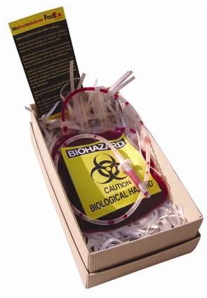 ชิ้นนี้มาจาก FedEx Express ที่ว่าด้วยบริการการจัดส่งพัสดุอันตรายต่างๆ ซึ่งมาในกล่องลูกฟูกสีน้ำตาลที่ปิดบนฝากล่องและด้านล่างกล่องไว้ด้วยป้ายสีเหลืองมีสัญลักษณ์ DANGER และข้อความ See Inside for Instruction และที่สำคัญคือในกล่องเป็นถุงเลือดปลอมซึ่งมีป้ายระบุไว้ด้านหลังว่าของชิ้นนี้ส่วนประกอบทางเคมีคืออะไรบ้าง