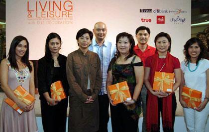นางรุ่งฟ้า เกียรติพจน์ (ที่ 2 จากขวา) ผู้อำนวยการฝ่ายสื่อสารการตลาดและบริหารภาพลักษณ์องค์กร บมจ. ทรู คอร์ปอเรชั่น และ บริษัท ทีเอ ออเร้นจ์ จำกัด ถ่ายภาพร่วมกับนางมยุรี ชัยพรหมประสิทธิ์ (ที่ 3 จากซ้าย) ผู้ช่วยกรรมการผู้จัดการด้านส่งเสริมและพัฒนาธุรกิจ บริษัท สยามพิวรรธน์ จำกัด นางรังสิมา กสิกรานันท์ (ที่ 2 จากซ้าย) บรรณาธิการอำนวยการ นิตยสาร แอล เดคคอเรชั่น นางวรลักษณ์ ตุลาภรณ์ (ที่ 3 จากขวา) ผู้อำนวยการผ่ายธุรกิจ บัตรเครดิต ซิตี้แบงก์ พร้อมด้วยผู้มีเกียรติในงานเปิดตัว นิทรรศการตกแต่งบ้าน “ลิฟวิ่ง แอนด์ เลเชอร์ 2005”