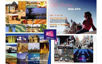 เคทีซี หรือ บริษัท บัตรกรุงไทย จำกัด (มหาชน) เอาใจสมาชิกบัตรเครดิตที่รักการผจญภัยและแสวงหาความแปลกใหม่ในชีวิต ด้วย 2 ทางเลือกใหม่ในการเดินทางท่องเที่ยวทั้งในและต่างประเทศ ด้วยแคมเปญ “Get Away with KTC” พร้อมคู่มือบอกเล่าสถานที่แปลกใหม่กับกิจกรรมที่น่าสนใจในประเทศ และแคมเปญ “KTC Postcards from the World” แนะนำ 20 เส้นทางท่องเที่ยวสุดฮิปในแถบเอเชีย กับส่วนลดสูงสุดถึง 60% สมาชิกบัตรสามารถลุ้นพักฟรีที่ รีสอร์ทในฝัน พร้อมรับรางวัลอื่นๆอีกมากมาย รวมมูลค่ากว่า 2.7 แสนบาท และพิเศษสุดด้วยบริการผ่อนชำระอัตโนมัติ KTC Flexi ดอกเบี้ย 0% นาน 3 เดือน หรือ 0.69% นานถึง 10 เดือน เที่ยวก่อนผ่อนทีหลัง ตั้งแต่วันนี้ – 31 ธันวาคม 2548