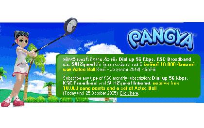 อินเตอร์เนต เค เอส ซี ผู้ให้บริการเชื่อมต่ออินเทอร์เน็ตชั้นแนวหน้าของไทย จับมือเกมออนไลน์สุดฮิต “ปังย่า” จัดโปรโมชั่นสุดพิเศษสำหรับลูกค้าอินเทอร์เน็ตรายเดือน ทั้งผู้ใช้ตามบ้านและอินเทอร์เน็ตคาเฟ่ทั่วประเทศ โดยผู้สมัครสมาชิกอินเทอร์เน็ตรายเดือนของเค เอส ซี ทั้งประเภทไดอัล-อัพ 56 Kbps แพ็คเกจ KSC Economy, KSC Premium และ KSC Unlimited และลูกค้าอินเทอร์เน็ตความเร็วสูง เค เอส ซี บรอดแบนด์, KSC Home ADSL และ SMEs ADSL รวมทั้งสนุก! ไฮสปีด อินเทอร์เน็ต ตั้งแต่วันนี้ถึงวันที่ 25 ตุลาคม 2548 จะได้รับฟรี 10,000 ปังพ้อยท์ และ Aztec Ball มูลค่า 6,900 คุกกี้ จากเกมปังย่า