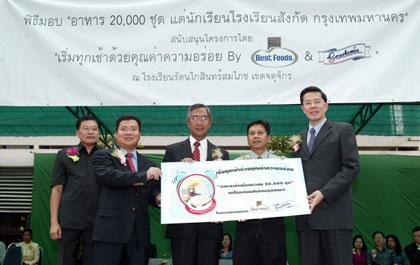 นายญนน์ โภคทรัพย์ กรรมการผู้อำนวยการ บริษัท ยูนิลีเวอร์ เบสท์ฟู้ดส์ (ประเทศไทย) จำกัด และนายโจเซฟ อึ้ง ประธานเจ้าหน้าที่บริหาร บริษัท การ์ดีเนีย ฟู้ดส์ (ประเทศไทย) จำกัด กล่าวถึงการจัดกิจกรรม “มอบอาหารเช้ากว่า 2 หมื่นชุดให้เด็กนักเรียน” ว่า “ เบสท์ฟู้ดส์ และการ์ดีเนีย มีความมุ่งมั่นที่จะสนับสนุนนโยบายของรัฐ “เมืองไทยแข็งแรง” เราจึงจัดโครงการรณรงค์การรับประทานอาหารเช้าขึ้นเพื่อเสนอทางเลือกในการรับประทานอาหารเช้าที่มีคุณค่าทางโภชนาการและเหมาะสมกับรูปแบบชีวิตในปัจจุบัน …เราหวังเป็นอย่างยิ่งที่จะเห็นเด็กไทยมีสุขภาพร่างกายและจิตใจที่แข็งแกร่ง สดใส พร้อมต่อการเรียนรู้ คิดสร้างสรรค์ในทุกวัน ซึ่งอาหารเช้าที่เรานำไปมอบให้กับเด็กจะเป็นขนมปังไฮไฟเบอร์ ผสมอินนูลิน และแซนด์วิชสเปรดรสใหม่ (ทูน่าหรือเชดด้าชีส) สำหรับทาขนมปัง ซึ่งสะดวก อร่อย และครบโภชนาการสำหรับเด็ก”