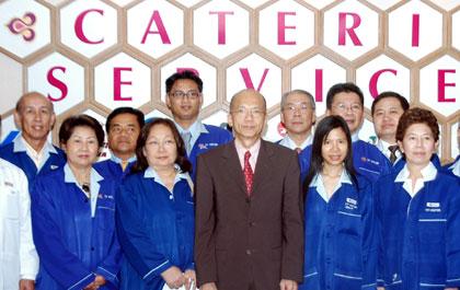 นายสาธก วรศะริน (แถวหน้าที่ 3 จากขวา) ผู้อำนวยการใหญ่ฝ่ายบริหารงานสนับสนุนการบริการ บนเครื่องบิน บริษัท การบินไทย จำกัด (มหาชน) นำ Food Inspector ซึ่งเป็นผู้ชำนาญด้านอาหารไทยและเจ้าของกิจการร้านอาหารจาก เมืองนิวยอร์ค เมดดริด ลอนดอน ฝรั่งเศส เยอรมัน แฟรงค์เฟิรต์ เดินทางเข้าเยี่ยมชมกิจการครัวการบิน (ดอนเมือง)