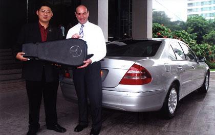 มร.โรเจอร์ อิมเมล รองประธานบริหารฝ่ายขายและการตลาด บริษัท เดมเลอร์ไครสเลอร์ (ประเทศไทย) จำกัด ส่งมอบรถยนต์เมอร์เซเดส-เบนซ์รุ่น E220 CDI Elegance มูลค่า 3.95 ล้านบาท ให้แก่คุณสรยุทธ สุทัศนจินดา หลังจากที่ได้ทดลองขับไปก่อนหน้านี้แล้วเกิดความประทับใจในสมรรถนะของเครื่องยนต์ดีเซล ซึ่งรถยนต์รุ่นนี้อยู่ระหว่างการจัดแคมเปญพิเศษ 0% นานถึง 48 เดือน ภายใน 30 กันยายนนี้เท่านั้น