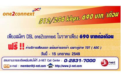 บริษัท จัสมิน อินเตอร์เนต จำกัด ผู้ให้บริการระบบอินเตอร์เน็ตภายใต้ชื่อ Ji-NET เสนอแพ็คเกจใหม่ล่าสุด “one2connext” อินเตอร์เน็ตความเร็วสูง ที่ความเร็วสูง 512/256 Kbps
