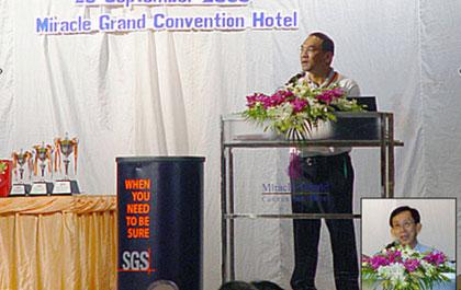 บริษัท เอสจีเอส (ประเทศไทย) จำกัด โดยคุณยุทธนา เพ็ชรมณี ผู้จัดการฝ่ายรับรองระบบ บริษัท เอสจีเอส (ประเทศไทย) จำกัด ได้จัดงานสัมมนาเชิงวิชาการ Quality Club ประจำปี 2005 สำหรับลูกค้าเอสจีเอส ทั้งนี้เพื่อให้ความรู้ และข้อมูลข่าวสารใหม่ๆ เกี่ยวกับการพัฒนาการรับรองระบบ รวมถึงการบริการรับรองระบบด้านอาหาร ISO 22000 และอื่นๆ ในงานดังกล่าวได้รับเกียรติจากคุณเมธา ชุณหศิริ ผู้อำนวยการฝ่ายส่งเสริมคุณค่า และตัวแทนฝ่ายบริหารคุณภาพและความปลอดภัยของอาหาร (รูปเล็ก) จาก MK Restaurant Co.,Ltd. ร่วมเป็นแขกรับเชิญ พร้อมกันนี้ยังได้รับเกียรติจากอาจารย์จตุพล ชมภูนิช มาช่วยสร้างสีสันและความบันเทิง ภายในงานมีการเลี้ยงรับรองลูกค้าที่ใช้บริการตรวจรับรองระบบ เพื่อเป็นการกระชับความสัมพันธ์ ซึ่งมีลูกค้าให้ความสนใจเข้าร่วมงานกว่า 800 คน