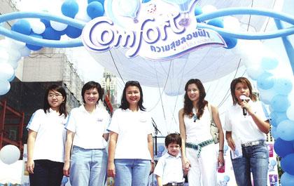 คอมฟอร์ท ผลิตภัณฑ์ปรับผ้านุ่ม จัดแคมเปญ “คอมฟอร์ท ความสุขลอยฟ้า” โดยเปิดโอกาสให้ผู้บริโภคมาสัมผัสประสบการณ์จริงของความนุ่ม โปร่ง และเบาสบาย สไตล์คอมฟอร์ท ครั้งแรกในเมืองไทย ผ่านไฮไลต์สำคัญของงานครั้งนี้คือ การนำผู้บริโภคตื่นตาตื่นใจกับการขึ้น “บอลลูนยักษ์” ใจกลางกรุง เมื่อวันที่ 22-24 ตุลาคม 2548 ที่ผ่านมา ณ ลานหน้าศูนย์การค้าเซ็นทรัล เวิลด์