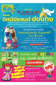 นอกจากนี้ ขอเชิญน้องๆที่มีอายุระหว่าง 3-5 ปี, 6-8 ปี และ 9-12 ปี ร่วมส่งวาดภาพระบายสี บินฟรี ดิสนีย์ ฮ่องกง จำนวน 3 รางวัล (รางวัลละ 3 ที่นั่ง) รวมมูลค่า 172,200 บาท โดยส่งภาพเข้าประกวดในหัวข้อ “ครอบครัวของฉัน กับนมเทสโก้” วันนี้-22 ม.ค 49 ที่เทสโก้ โลตัสทุกสาขา (Hyper, Talad, Value, Express)