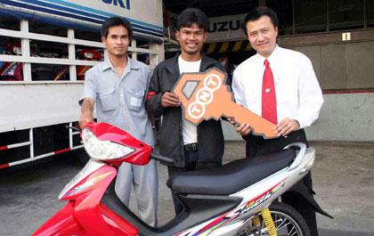 ทีเอ็นที เอ็กซ์เพรส ผู้ให้บริการขนส่งสินค้าและพัสดุด่วนชั้นนำของโลก มอบรางวัลให้กับผู้โชคดีในแคมเปญพิเศษ “เปิดปุ๊บ รับปั๊บ” เพื่อคืนกำไรให้กับลูกค้า โดยมีคุณอิศรชัย ภิญโญ ผู้จัดการฝ่ายขาย ตัวแทนจากบริษัท ทีเอ็นที เป็นผู้มอบรางวัลรถมอเตอร์ไซด์ซูซุกิ สเมช ดิสก์ ให้กับคุณเพียว ก้อนเสมา และขอแสดงความยินดีให้กับผู้โชคดีคนอื่นๆ ที่ได้รับรางวัลอีกกว่า 100 ท่าน งานนี้เรียกได้ว่าลูกค้าของ ทีเอ็นที ปราบปลื้มดีใจกันทุกคน เพราะได้รับของรางวัลกลับบ้านกันไปอย่างทั่วหน้า