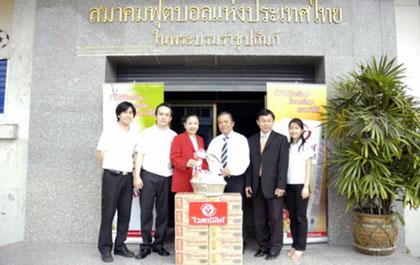 เมื่อเร็วๆ นี้ บริษัท กรีนสปอต (ประเทศไทย) จำกัด ผู้ผลิตและจัดจำหน่ายน้ำนมถั่วเหลือง “ไวตามิ้ลค์” โดยนางสาวจันทนี สอนใจ ผู้จัดการฝ่ายการตลาด ผลิตภัณฑ์ไวตามิ้ลค์ แชมป์ (ที่สามจากซ้าย) พร้อมทีมงานการตลาดผลิตภัณฑ์ไวตามิ้ลค์ ในฐานะผู้ให้การสนับสนุนเครื่องดื่มน้ำนมถั่วเหลืองเพื่อสุขภาพทัพนักกีฬาไทย เข้าเยี่ยมสมาคมฟุตบอลแห่งประเทศไทย ในพระบรมราชูปถัมภ์พร้อมมอบเครื่องดื่มน้ำนมถั่วเหลืองไวตามิ้ลค์ให้กับนายวรวีร์ มะกูดี เลขาธิการสมาคม (ที่สามจากซ้าย) และนายวิมล กาญจนะ ผู้จัดการทีมฟุตบอลชาติไทย ชุดฟุตบอลโลก 2010 (ที่สองจากซ้าย) เพื่อยืนยันเจตนารมณ์ในการสนับสนุนให้นักฟุตบอลทีมชาติไทย มีความพร้อมเต็มที่สำหรับการลงแข่งขันในครั้งต่อไป
