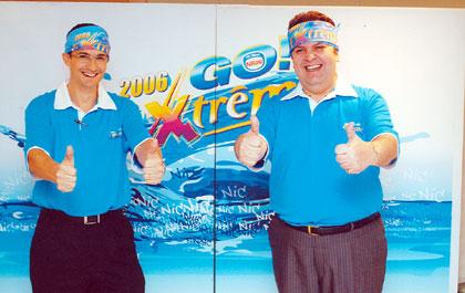 มร.ฌอง-มารี เกอร์เน่ ผู้อำนวยการอาวุโส กลุ่มผลิตภัณฑ์ไอศกรีม เนสท์เทค เอส.เอ. (ขวา) ร่วมแสดงความยินดีกับ มร.ฟิลลิป เอเบอเล่ ผู้อำนวยการบริหาร ธุรกิจไอศกรีมและผลิตภัณฑ์แช่เย็น บริษัท เนสท์เล่ (ไทย) จำกัด ที่สามารถก้าวขึ้นเป็นผู้นำร่วมในตลาดไอศกรีมเมืองไทยได้สำเร็จ ด้วยอัตราการเติบโตกว่า 30% เป็นระยะเวลา 3 ปีติดต่อกัน โดยนอกจากจะเป็นบริษัทไอศกรีมที่มีอัตราการเติบโตสูงสุดในประเทศไทยแล้ว ยังถือว่าเติบโตสูงสุดเมื่อเทียบกับประเทศต่างๆ ในกลุ่มของเนสท์เล่ไอศกรีมทั่วโลกอีกด้วย