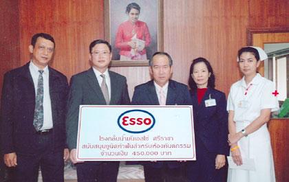 บริษัท เอสโซ่ (ประเทศไทย) จำกัด (มหาชน) ถือเป็นนโยบายสำคัญในการส่งเสริมให้ประชาชนในท้องถิ่นได้รับบริการทางการแพทย์ที่ทันสมัย จึงได้มอบเงินสนับสนุนการจัดซื้อยูนิตทำฟังดังกล่าวให้แก่โรงพยาบาลสมเด็จฯ เพื่อให้บริการแก่ผู้ป่วยโรคเหงือกและฟันในท้องที่อำเภอศรีราชา ให้ทั่วถึงและดียิ่งขึ้น