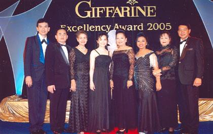 โรงแรมดุสิตธานี – พญ.นลินี ไพบูลย์ (ที่ 4 จากซ้าย) ประธานกรรมการ บริษัท กิฟฟารีน สกายไลน์ ยูนิตี้ จำกัด จัดงาน “กิฟฟารีน เอ็กเซลเลนซี่ อวอร์ด 2005” (Giffarine Excellency Awards 2005) เพื่อเฉลิมฉลองและแสดงความยินดีกับนักธุรกิจยอดเยี่ยม ประจำปี 2548 พร้อมกันนี้ได้มอบรางวัลแก่ผู้บริหารระดับพาราไดซ์, เอ็กซ์คลูซีฟ พาราไดซ์, แกรนด์ พาราไดซ์ และไดมอน แกรนด์ พาราไดซ์ ที่มีผลงานผ่านเกณฑ์ในปี 2548