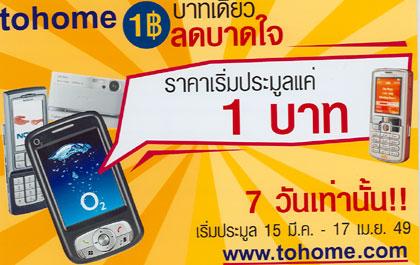แคมเปญ “tohome บาทเดียว ลดบาดใจ” จะเริ่มตั้งแต่ 15 มีนาคม ถึง 17 เมษายน 2549 รวม 4 สัปดาห์ โดยแต่ละสัปดาห์จะนำสินค้า 3 รายการที่แตกต่างกันและกำลังเป็นที่นิยมในตลาดมาให้ลูกค้าได้ร่วมประมูลกัน ซึ่งลูกค้าแต่ละท่านจะได้ร่วมสนุกและร่วมลุ้นเป็นเจ้าของสินค้าสุดฮอตในราคาสุดคุ้มที่ลูกค้าเป็นคนกำหนดเองถึง 12 รายการ โดยเริ่มต้นเพียงแค่ 1 บาทเท่านั้น ทั้งนี้ สินค้าที่ทูโฮดอทคอมจะนำเสนอให้ลูกค้าร่วมประมูล ประกอบด้วย