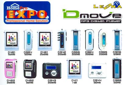 พลาดไม่ได้กับอุปกรณ์ไฮเทคโนโลยีชิ้นสำคัญ เครื่องเล่น MP3 ที่ขนกันมาเพื่อเอาใจบรรดาชาวไอทีกันถึงที่ Leona ก็ไม่น้อยหน้านำเครื่องเล่น MP3 แบรนด์ Dmove มาเปิดตัวครั้งแรกในงาน Home Pro Expo 2006 ที่ Hall 7 เพื่อย้ำแบรนด์ Dmove ให้เด่นชัดยิ่งขึ้น โดยขนเครื่องเล่น MP3 มาร่วมในงานมากกว่า 12 รุ่น ซึ่งมีความจุตั้งแต่ 128 MB-1 GB เรียกว่ามางานเดียวแต่ครบครันทุกสิ่งของตกแต่งบ้านจริงๆ