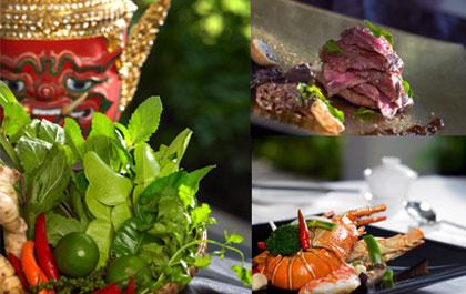 บุฟเฟ่ต์นานาชาติราคาเพียงท่านละ 1,100 บาท เลือกรับประทานได้ไม่อั้น รวมไปถึงบาร์บีคิว ซีฟู้ด บุฟเฟ่ต์ ที่ใหญ่ที่สุดพร้อมเพลิดเพลินกับการแสดงรำไทยทุกค่ำคืน (ราคาไม่รวมค่าภาษีและค่าบริการ)
