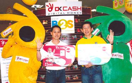 นายธานินทร์ อังสุวรังษี ผู้จัดการทั่วไป บริษัท เพย์เมนท์ โซลูชั่น จำกัด (ขวา) และนายชัยรัตน์ เพชรดากูล ผู้ช่วยกรรมการผู้จัดการ ฝ่ายบริหารสินค้า บริษัท บีทูเอส จำกัด(ซ้าย) ผนึกกำลังและร่วมจัดกิจกรรมพิเศษ “110 กิจกรรมกับบีทูเอส” นอกจากจะเป็นการขยายช่องทางการจัดจำหน่ายบัตรเงินสดโอเค แคล คอลเลคชั่น โอเค แคช ฟีฟ่าเวิล์ดคัพ การ์ด แล้วยังพร้อมนำเสนอโปรโมชั่นส่วนลดพิเศษในการซื้อหนังสือ 10% ให้กับผู้ใช้จ่ายผ่านบัตรโอเคแคชของคอลเลคชั่นนี้โดยเฉพาะ ที่ร้านบีทูเอสทุกสาขา โดยเริ่มตั้งแต่วันนี้ไปจนถึงสิ้นเดือนมิถุนายน 2549