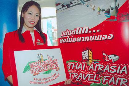 สายการบินไทย แอร์เอเชีย เชิญร่วมงาน “Thai AirAsia Fair ครั้งที่ 1” ในงานครั้งนี้ ทางสายการบินฯได้รับกระแสตอบรับจากผู้ที่สนใจสอบถามถึงรายละเอียดการจัดงานและแพคเกจท่องเที่ยวราคาประหยัด ภายในงานทางสายการบินฯได้เตรียมบัตรโดยสารราคาพิเศษเพื่อรองรับกับความต้องการของผู้ที่สนใจเป็นจำนวนมาก โดยลูกค้าสามารถซื้อบัตรโดยสารภายในประเทศทุกเส้นทางในราคา 199 บาท และเส้นทางต่างประเทศราคา 399 บาท พิเศษสุด เอาใจคนชอบเที่ยวด้วยตั๋วราคาเพิ่มต้นเพียง 9 บาท พร้อมเลือกสรรแพ็คเกจท่องเที่ยวสุดคุ้มอีกมากมาย ภายในงานยังได้พบกับการสัมภาษณ์เกี่ยวกับอาชีพการทำงานของแอร์โฮเตสสาวสวย “นิ้ง” กุลสตรี ศิริพงษ์ปรีดา พบกันให้ได้ภายในงาน ระหว่างวันที่ 23 – 25 มิ.ย. 49 นี้ ณ ศูนย์ประชุมแห่งชาติสิริกิติ์
