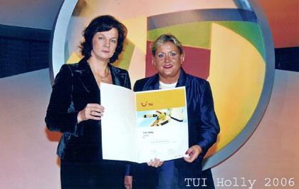 วอลลี่ ฮอปปี (ขวา) ผู้อำนวยการฝ่ายขายด้านธุรกิจท่องเที่ยว โรงแรมแมริออท อินเตอร์เนชั่นแนล และตัวแทนจากโรงแรมแมริออท รีสอร์ท แอนด์ สปา กรุงเทพฯ รับรางวัลเกียรติยศ “TUI Holly Award” พร้อมใบประกาศนียบัตรจาก คริสติน ฟลีด-เตอร์คิสม์ (ซ้าย) กรรมการผู้จัดการ แอร์ทัวร์ อินเตอร์เนชั่นแนล และ TUI ประเทศเยอรมันนี เพื่อเป็นการรับรองว่าโรงแรมแมริออท รีสอร์ท แอนด์ สปา กรุงเทพฯ เป็น 1 ใน 100 โรงแรมดีเด่นในโลกและเป็นโรงแรมแรกของทวีปเอเชีย รางวัลดังกล่าวได้ถูกโหวตมาจากลูกค้า โดยคัดเลือกมาจากโรงแรมกว่า 17,000 โรงแรมจากทั่วโลก ซึ่งพิธีมอบรางวัลจัดขึ้นที่เมืองแฮนโอเวอร์ ประเทศเยอรมันนี เมื่อไม่นานมานี้ TUI เป็นหนึ่งในบริษัททัวร์ชั้นนำที่มีชื่อเสียงในประเทศเยอรมันนี ที่นำเสนอโปรแกรมพักผ่อนระดับนานาชาติกับผู้ประการชั้นนำระดับโลก