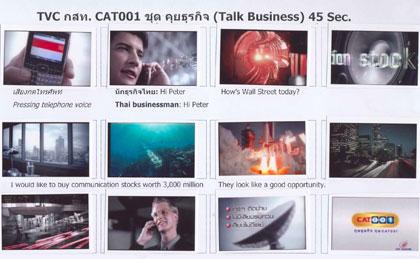 ใช้การถ่ายทำจริงบวกกับการแมตช์ภาพจาก photo stock และการทำ Computer graphic แสดงภาพสัญลักษณ์ของถ้อยคำ การสื่อสารจากนักธุรกิจเมืองไทยไปสู่นักธุรกิจเมืองนอก ซึ่งเมื่อเริ่มสตาร์ทจากการโทร.จากเมืองไทยต้นสายแล้วก็ไม่มีอะไรเป็นอุปสรรคของการเดินทางของถ้อยความนี้ได้