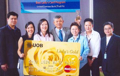 นายธนชัย ธนชัยอารีย์ รองกรรมการผู้จัดการใหญ่ กลุ่มบุคคลธนกิจ (ที่ 4 จากซ้าย) พร้อมด้วยคณะผู้บริหาร ธนาคารยูโอบี จำกัด (มหาชน) รับรางวัล MasterCard Marketing Leadership Awards 2006 สาขาบัตรสำหรับผู้หญิงยอดเยี่ยม ของภูมิภาคเอเชีย-แปซิฟิก จากมาสเตอร์การ์ด เวิลด์วายด์ ที่มอบให้แก่บัตรเครดิตยูโอบี เลดี้ ซึ่งประสบความสำเร็จยอดเยี่ยมในการจัดกิจกรรมส่งเสริมการตลาด ให้กับสมาชิกผู้ถือบัตรเครดิตยูโอบี เลดี้ สามารถสร้างการรับรู้และภาพลักษณ์โดดเด่นเฉพาะตัว โดยมอบสิทธิพิเศษสูงสุดเพื่อผู้หญิงได้อย่างแท้จริง