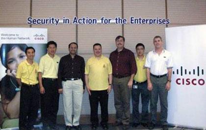เมื่อเร็วๆ นี้ นายวัตสัน ถิรภัทรพงศ์ (ที่ 2 จากซ้าย) ผู้อำนวยการฝ่ายแอ๊ดแวนซ์ เทคโนโลยี บริษัท ซิสโก้ ซีสเต็มส์ (ประเทศไทย) จำกัด นำทีมผู้เชี่ยวชาญด้านระบบรักษาความปลอดภัยเครือข่ายจากต่างประเทศและไทย จัดสัมนาภายใต้หัวข้อ “Security in Action for the Enterprises” เพื่อให้ความรู้กับกลุ่มลูกค้าองค์กรขนาดใหญ่ นอกจากสัมมาให้ความรู้ทางด้านเทคนิคต่างๆ แล้ว ยังเปิดโอกาสให้ลูกค้าได้ปรึกษาจากผู้เชี่ยวชาญด้านโซลูชั่นระบบรักษาความปลอดภัยข้อมูลเครือข่ายอย่างครบถ้วน