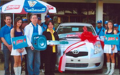 นายบุญชัย ฐิติพิเชฐกุล ผู้จัดการฝ่ายขายทั่วไป บริษัท เอฟแอนด์เอ็น ยูไนเต็ด จำกัด ผู้ผลิตและจำหน่าย ไอศกรีมแมกโนเลีย ยกขบวนพาเหรดไอศกรีมอารมณ์ดี เพื่อมอบรถโตโยต้า ยาริส มูลค่า 600,000 บาท ให้คุณผกามาศ กุลหนาน ผู้โชคดีจากจังหวัดน่าน ที่ส่งชิ้นส่วนผลิตภัณฑ์เข้าร่วมแลกและชิงโชคในแคมเปญ “อร่อยแลก อารมณ์ดี รับยาริส” ซึ่งไอศกรีมแมกโนเลียจัดขึ้นเพื่อเป็นการคืนกำไรให้ผู้บริโภค เมื่อเร็วๆ นี้