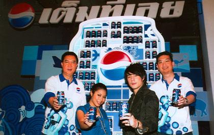 จากภาพ: นายชาลี จิตจรุงพร (ที่ 2 จากซ้าย) ผู้อำนวยการฝ่ายการตลาด บริษัท เป๊ปซี่-โคล่า (ไทย) เทรดดิ้ง จำกัด และ นายฐิติวุฒิ์ บุลสุข (ที่ 2 จากขวา) ผู้อำนวยการฝ่ายการตลาด บริษัท เสริมสุข จำกัด (มหาชน) ถ่ายรูปร่วมกับ โดม-ปกรณ์ ลัม และ หนูแหวน-ปวริศา เพ็ญชาติ ในงานแถลงข่าวเปิดตัวแคมเปญ “ชีวิตเต็มที่ได้อีกเยอะ เป๊ปซี่…เต็มที่เลย” แคมเปญใหม่ที่มาพร้อมรูปแบบการสื่อสารแบบใหม่ล่าสุดที่เป๊ปซี่จัดขึ้นพร้อมกันทั่วโลก เพื่อจุดพลังไฟจินตนาการให้คนรุ่นใหม่แบบอินเทอร์แอคทีฟ เพื่อให้พวกเขาได้ค้นพบตัวตนที่แท้จริงของตนเอง