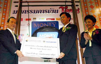 สมหมาย ภาษี รัฐมนตรีช่วยว่าการกระทรวงการคลัง ให้เกียรติเป็นประธานมอบรายได้จากการจำหน่ายพ็อคเก็ตบุ้คและนิทานภาพส่งเสริมการออมราคาพิเศษที่บูธตลาดหลักทรัพย์ฯ ในงานมันนี่ เอ็กซ์โป โคราช 2007 โดยไม่หักค่าใช้จ่าย แก่ บุญส่ง จำปาโพธิ์ ประธานกรมอาชีวะจังหวัดนครราชสีมา เพื่อนำไปซื้อหนังสือให้ห้องสมุดวิทยาลัยอาชีวะศึกษา นครราชสีมา โดยมีภัทรียา เบญจพลชัย กรรมการและผู้จัดการ ตลาดหลักทรัพย์แห่งประเทศไทยร่วมแสดงความยินดี