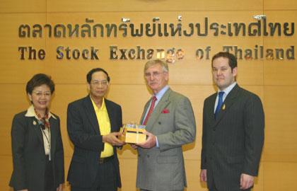 มร. เดวิด วิลเลียม ฟอลล์ เอกอัครราชทูตแห่งสหราชอาณาจักร ประจำประเทศไทย (คนที่ 3 จากซ้าย) เข้าพบคุณวิจิตร สุพินิจ ประธานกรรมการ ตลาดหลักทรัพย์แห่งประเทศไทย (คนที่ 2 จากซ้าย) และคุณภัทรียา เบญจพลชัย กรรมการและผู้จัดการ เพื่อหารือเกี่ยวกับทิศทางเศรษฐกิจไทยและโอกาสการลงทุนในปี 2550 พร้อมรับมอบซีดีเพลงไทยในโครงการบันทึกเสียงเพลงประจำชาติ บรรเลงโดยวงดุริยางค์ฟีลฮาร์โมนิกแห่งประเทศไทยเป็นที่ระลึก