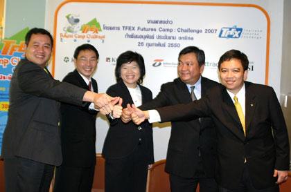 นางเกศรา มัญชุศรี กรรมการผู้จัดการ บริษัท ตลาดอนุพันธ์ (ประเทศไทย) จำกัด (มหาชน) กล่าวว่า TFEX มุ่งสร้างความรู้ความเข้าใจในการซื้อขายอนุพันธ์ เพื่อเพิ่มศักยภาพให้กับผู้สนใจและผู้ลงทุน สามารถซื้อขายอนุพันธ์ได้อย่างมั่นใจ “กิจกรรม TFEX Futures Camp: Challenge 2007 ท้าเซียนอนุพันธ์ ประชันเกม Online” ที่จะจัดแข่ง 3 รอบในเดือนพฤษภาคม สิงหาคม และตุลาคมนี้ เริ่มตั้งแต่การอบรมให้ความรู้ ทดลองซื้อขาย และร่วมสนุกกับการแข่งขันที่ท้าทายบนสนามการซื้อขายอนุพันธ์แบบเสมือนสถานการณ์จริง โดย TFEX ได้รับความสนับสนุนจากโบรกเกอร์อนุพันธ์ชั้นนำ ได้แก่ บริษัทหลักทรัพย์ กิมเอ็ง (ประเทศไทย) จำกัด (มหาชน), บริษัทหลักทรัพย์ เคจีไอ (ประเทศไทย) จำกัด (มหาชน) บริษัท ทรีนีตี้ โพลาริส ฟิวเจอร์ส จำกัด และบริษัทหลักทรัพย์ ธนชาต จำกัด (มหาชน) อีกทั้งยังได้รับความร่วมมือจากบริษัทเซ็ทเทรด ดอม จำกัด และ สถาบันพัฒนาความรู้ตลาดทุน (TSI) ด้วย