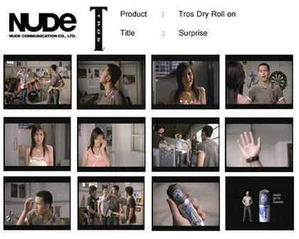 ผ่านสายตากันไปเป็นที่เรียบร้อยแล้ว สำหรับผลงานโฆษณาชุดใหม่ของ Tros Dry Roll on ผลิตภัณฑ์ในกลุ่มดูแลผิวพรรณสำหรับผู้ชาย ทรอส (Tros) ในชื่อชุด เพิ่มเวลาอีกนิด ให้ชีวิตทุกด้าน ของ บริษัทไบโอ คอนซูเมอร์ จำกัด ซึ่งเป็นผู้นำตลาดในกลุ่มผลิตภัณฑ์ของ Male toiletry ไม่ว่าจะเป็น Cologne, Roll on, Facial Foam, hair gel และ Deo Spray สำหรับกลุ่มวัยรุ่นชาย ที่มีการแย่งชิงส่วนแบ่งทางการตลาดกันอย่างดุเดือด โดยเฉพาะในกลุ่มผลิตภัณฑ์ประเภท Roll on, Facial Foam และ Deo Spray ที่ จับกลุ่ม Teen segment ที่เป็นกลุ่มวัยรุ่นชาย อายุระหว่าง 15 – 18 ปี หลังจากได้รับความสำเร็จกันไปอย่างล้นหลาม ภายหลังการเปิดตัว Tros Dry Roll on สูตรแห้งเร็ว เมื่อปลายปีที่ผ่านมาจากผลงานการสร้างสรรของ บริษัท นู้ด คอมมิวนิเคชั่น จำกัด เอเจนซี่โฆษณาเจ้าเก่า ผู้สะท้อนไอเดียสร้างสรรค์บนนิยาม Surprise, Sincere และ Sexy ทียังคงได้รับความไว้วางใจจาก ผู้บริหารบริษัท ไบโอ คอนซูเมอร์ มอบหมาย ให้ดูแลงานโฆษณาอย่างต่อเนื่องในปีนี้