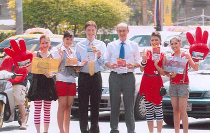 (ในภาพ) มร. มาริอาโน เรซิน (ที่ 3 จากซ้าย) ผู้อำนวยการบริหาร ฝ่ายการตลาดและสื่อสารธนาคารเอชเอสบีซี ประเทศไทย และมร. คอนราโด เองเกล (ที่ 4 จากซ้าย) ผู้อำนวยการบริหาร ธุรกิจบุคคลธนกิจ ประจำภูมิภาคเอเชียแปซิฟิก ธนาคารเอชเอสบีซี ร่วมแจกแผ่นปลิวเพื่อรณรงค์ผู้ขับขี่ยานพาหนะให้ใช้พลังงานอย่างคุ้มค่า เมื่อเร็วๆ นี้