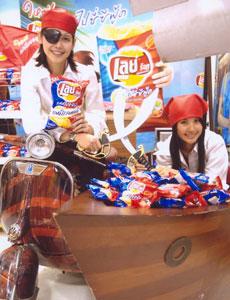 เลย์ มันฝรั่งแท้ทอดกรอบอันดับหนึ่งของเมืองไทย โดยบริษัท เป๊ปซี่-โคล่า (ไทย) เทรดดิ้ง จำกัด เดินหน้ารุกตลาดในช่วงซัมเมอร์อย่างต่อเนื่อง ด้วยการส่งแก๊งโจรสลัดลาวบุกย่านวัยรุ่นโมเดิร์นเทรด และสถานศึกษาทั่วประเทศ ตระเวนเดินสายแจกผลิตภัณฑ์ใหม่ มันฝรั่งแท้ทอดกรอบแผ่นหยัก “เลย์ รสสไปซี่ซีฟู้ด” กว่า 500,000 ซองตลอดเดือนมีนาคมและเมษายนนี้ เพื่อให้ผู้บริโภคได้ลิ้มลอง รสชาติซีฟู้ดถึงใจ ราดน้ำจิ้มถึงรส ใครลองต้องซื้อ ซึ่งเป็นรสชาติเฉพาะของ “เลย์ สไปซี่ซีฟู้ด” มีจำหน่ายใน 4 ขนาด ได้แก่ ขนาด 6 บาท 10 บาท 20 บาท และ 30 บาท ตามร้านค้าและซูเปอร์มาร์เก็ตทั่วประเทศ
