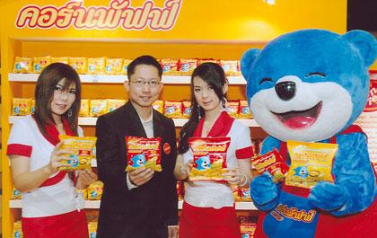 คุณชนินทร์ ยรรยง ผู้จัดการฝ่ายการตลาด บริษัท สยามร่วมมิตร จำกัด นำขบวนพริ๊ตตี้ โชว์คอร์นพัฟฟ์โฉมใหม่ ที่มีสีสันสดใสกว่าเดิมพร้อมรสชาติใหม่ “ซุปข้าวโพด” ในงานแถลงข่าว “แผนการตลาดคอร์นพัฟฟ์ ปี 2550 และครบรอบ 20 ปี” พร้อมงัดกลยุทธ์ Hero Marketing พร้อมสร้างประสบการณ์แบรนด์ผ่านพี่หมีคอร์นพัฟฟ์ ณ อิมแพคชาเลนเจอร์ 3 เมืองทองธานี