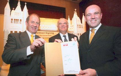 มร. คริสโตเฟอร์ พอล (ขวา) รองประธานฝ่ายธุรกิจสัมพันธ์และสมาชิกบัตร แห่งบริษัท อเมริกัน เอ็กซ์เพรส (ไทย) จำกัด จับมือกับมร.เกรกกอรี่ เมโดวส์ (กลาง) แห่งโรงแรมคอนราด กรุงเทพฯ และ มร.ไบรอัน ซินแคลร์-ทอมสัน (ซ้าย) แห่งสายการบินสวิส อินเตอร์เนชั่นแนล แอร์ไลน์ ร่วมกันเซ็นสัญญาเปิดตัวแคมเปญการตลาดใหม่ล่าสุด เรียกว่า “Win The World” ที่มอบสิทธิพิเศษเป็นส่วนลดสูงสุดถึง 30% ให้กับลูกค้าผู้ถือบัตรอเมริกัน เอ็กซ์เพรส เมื่อใช้จ่ายผ่านบัตรอเมริกันเอ็กซ์เพรสที่โรงแรมคอนราด กรุงเทพฯ ทันที พร้อมรับสิทธิร่วมชิงบัตรโดยสารเครื่องบินชั้นธุรกิจ 2 ที่นั่ง ของสายการบินสวิส อินเตอร์เนชั่นแนล แอร์ไลน์ เพื่อเลือกเดินทางไปยัง 4 จุดหมายทั่วโลก นิวยอร์ค ลอนดอน อิสตันบูล หรือ สิงคโปร์ พร้อมที่พักสุดหรูในโรงแรมคอนราด หรือโรงแรมฮิลตัน