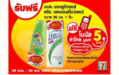 แฮปปี้จากดีแทค ร่วมกับ พีแอนด์จี พันธมิตรล่าสุดในกลุ่มสินค้าอุปโภคบริโภค จัดโปรโมชั่นมอบรางวัลให้ลูกค้าแฮปปี้รับโทรฟรีทันทีแบบไม่ต้องลุ้น รวมมูลค่าถึง 5 ล้านบาท เมื่อซื้อผลิตภัณฑ์แชมพูรีจอยซ์หรือเฮดแอนด์โชว์เดอร์ สูตรใดก็ได้ ขนาด 90 มล. รับคูปองโทรฟรีแฮปปี้ มูลค่า 5 บาท ซึ่งแนบไปกับขวดผลิตภัณฑ์จำนวน 1 ล้านชิ้นที่เซเว่นอีเลฟเว่นทุกสาขาทั่วประเทศ