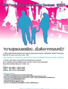 บริษัท มั่นคงเคหะการ จำกัด (มหาชน) บริษัทชั้นนำในวงการอสังหาริมทรัพย์ผู้ดำเนินโครงการชวนชื่น และ สิรีนเฮ้าส์ ของเชิญชวนผู้สนใจร่วมส่งผลงานภาพถ่ายเข้าประกวดในโครงการประกวดภาพถ่าย MK Young Creative Photo Contest 2007 ภายใต้หัวข้อ ครอบครัวพอเพียง เพื่อร่วมกันถ่ายทอดภาพแห่งความสุขและอบอุ่นของครอบครัวภายใต้คอนเซ็ปต์ “พอเพียง”