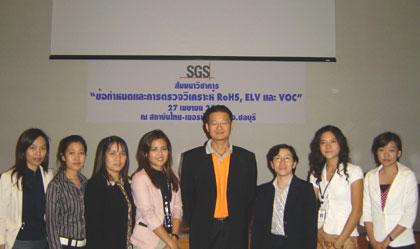 บริษัท เอสจีเอส (ประเทศไทย) จำกัด โดยคุณ ประดิษฐ์ ยงศ์พันธ์ชัย ผู้จัดการฝ่ายทดสอบทางห้องปฏิบัติการและสินค้าอุปโภบริโภค จัดงานสัมมนาเชิงวิชาการในหัวข้อ “ข้อกำหนดการตรวจวิเคราะห์ RoHS, ELV, VOC” เพื่อเป็นการเตรียมความพร้อมและเสริมสร้างขีดความสามารถในการแข่งขันให้กับผู้ประกอบการ ซึ่งเอสจีเอส ได้พัฒนาการตรวจวิเคราะห์สารอันตรายตามกฎระเบียบของสหภาพยุโรปและพัฒนาความพร้อมในการตรวจวิเคราะห์ตามข้อตกลงของสมาคมผู้ผลิตรถยนต์ญี่ปุ่นเพื่อสามารถตอบสนองความต้องการของลูกค้าในการตรวจวิเคราะห์ การสัมมนาครั้งนี้ได้จัดขึ้น ณ สถาบันไทย-เยอรมัน จังหวัดชลบุรี