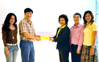 นายธวัชชัย ธิติศักดิ์สกุล (ที่ 2 จากซ้าย) รองประธานเจ้าหน้าที่บริหารอาวุโส สายธุรกิจบัตรเครดิต และนางกัณฑรัตน์ เจิมจิตรผ่อง (ซ้าย) ผู้ช่วยประธานเจ้าหน้าที่บริหาร ฝ่ายสื่อสารองค์กรและธุรกิจสัมพันธ์ “เคทีซี” หรือ บริษัท บัตรกรุงไทย จำกัด (มหาชน) มอบเงินบริจาค จำนวน 20,000 บาท แก่นางกฤติกา เพี้ยนศรี (ที่ 3 จากขวา) ผู้ปกครองสถานสงเคราะห์คนไร้ที่พึ่งบ้านเมตตา จังหวัดนครราชสีมา เพื่อใช้ในกิจกรรมต่างๆ ของสถานสงเคราะห์ฯ ณ เคทีซี อาคารสมัชชาวาณิช 2 ถนนสุขุมวิท 33 เมื่อเร็วๆ นี้