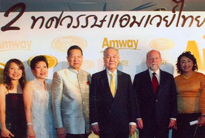 ฯพณฯ อานันท์ ปันยารชุน อดีตนายกรัฐมนตรีและประธานสถาบันสิ่งแวดล้อมไทย (ที่ 3 จากขวา) และ เอกอัครราชทูตสหรัฐอเมริกาประจำประเทศไทย มร.ราล์ฟ แอล บอยซ์ (H.E. MR. RALPH L. BOYCE) (ที่ 2 จากขวา) ให้เกียรติร่วมแสดงความยินดีในพิธีฉลองความสำเร็จ “2 ทศวรรษแอมเวย์ไทย” โดยมีนายปรีชา ประกอบกิจ กรรมการผู้จัดการ บริษัท แอมเวย์ (ประเทศไทย) จำกัด (ที่ 3 จากซ้าย) พร้อมคณะผู้บริหารให้การต้อนรับ ซึ่งภายในงานประกอบด้วยบริษัทคู่ค้าที่เป็นพันธมิตรทางธุรกิจ และนักธุรกิจแอมเวย์รวมกว่า 600 รายร่วมแสดงพลังของความสำเร็จตลอดระยะเวลา 20 ปี พร้อมการก้าวสู่ทศวรรษที่ 3 ด้วยกัน ณ ห้องแกรนด์บอลรูม โรงแรมแชงกรี-ล่า เมื่อเร็วๆ นี้